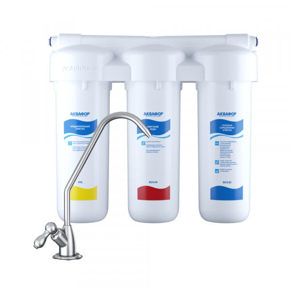 Как и все фильтры семейства Трио, он впишется в любой бюджет и обеспечит 4000 литров чистой воды на год для большой семьи. Не забывайте менять модуль предочистки раз в три месяца и спокойно готовьте всю еду и напитки на фильтрованной воде, не считая цену за литр!