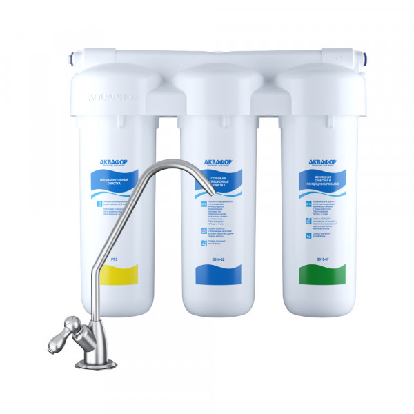 Как и все фильтры семейства Трио, он впишется в любой бюджет и обеспечит 6000 литров чистой воды на год для большой семьи. Не забывайте менять модуль предочистки раз в три месяца и спокойно готовьте всю еду и напитки на фильтрованной воде, не считая цену за литр!